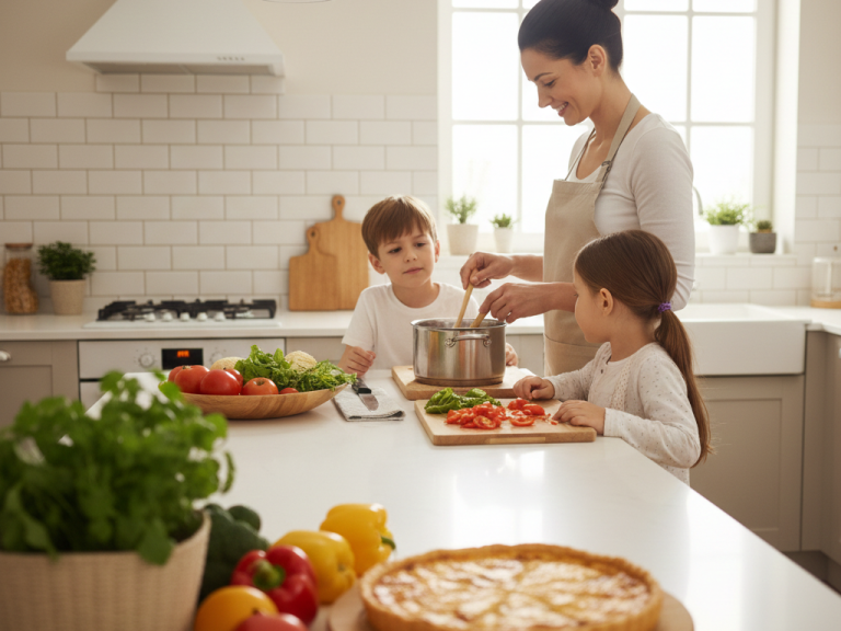 Préparation de repas simples : Élaboration de plats familiaux et équilibrés (gratins, rôtis, potages) directement dans votre cuisine.