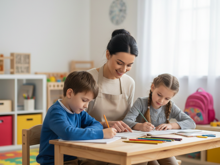 Aide aux devoirs : Suivi scolaire pour les primaires et collégiens, aide à la méthodologie et vérification des leçons.